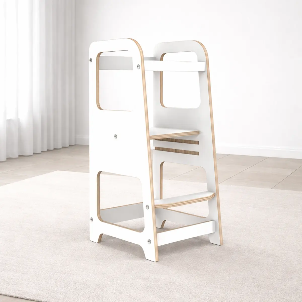 מגדל למידה עם הגנה המאפשרת אפילו לילד קטן מאוד להגיע למקומות קשים בבית ולהגיע לגובה עולם המבוגרים.