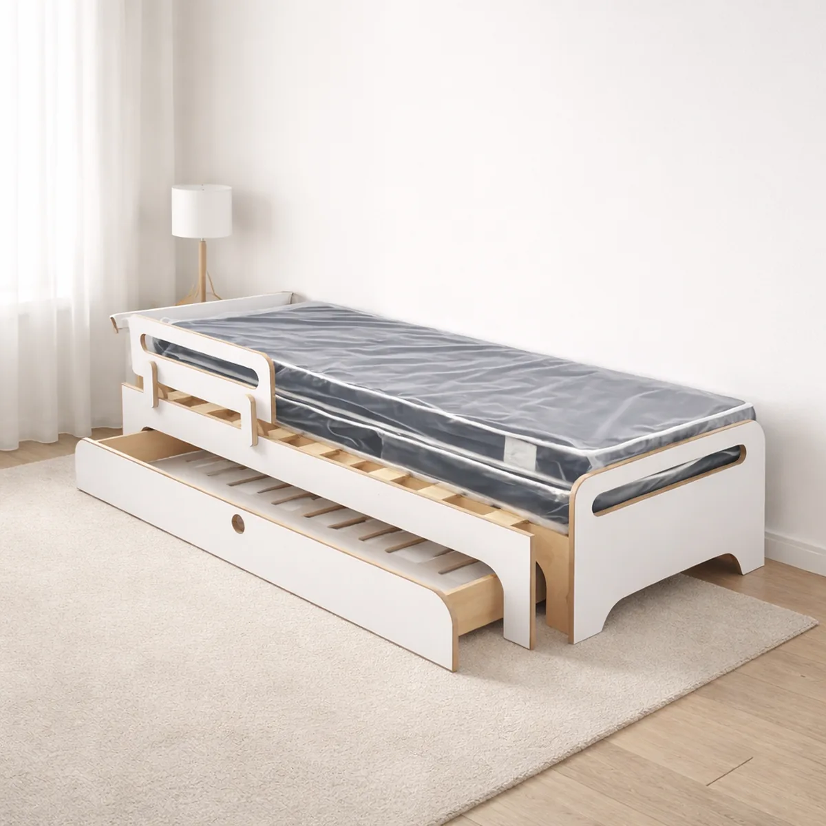 מיטת גומי היא פתרון מושלם לחדרי ילדים, המשלב נוחות, עיצוב חכם וחיסכון במקום. המיטה כוללת מגירת אחסון מרווחת ומיטת חבר נפתחת שמגיעה בדיוק לאותו גובה – מה שהופך אותה לשני מקומות שינה בגובה אחיד, אידאלי לאירוח ולשינה משותפת.